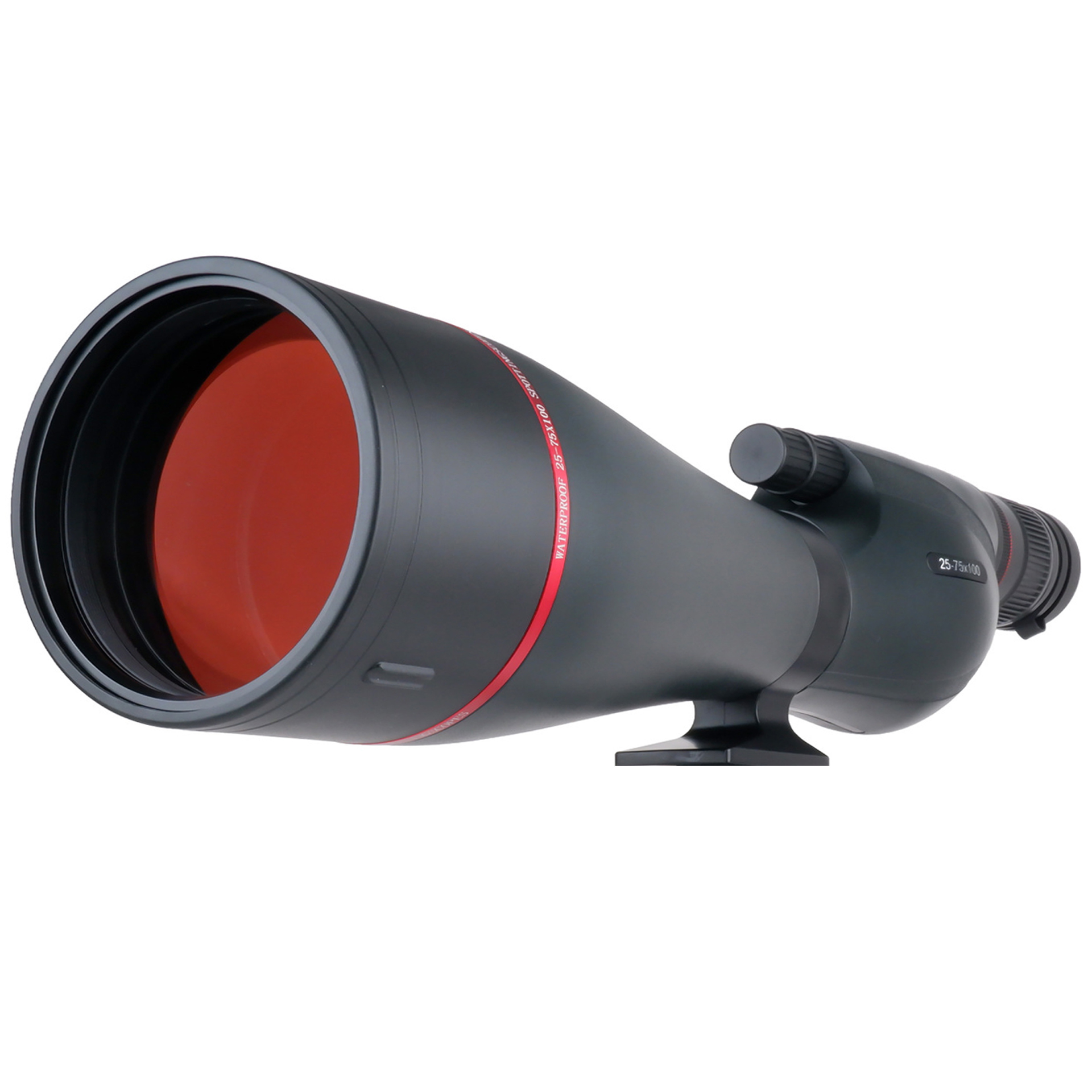高倍观鸟(观靶)镜,采用高清ED超低色散镜片成像,消除紫边降低色散色差,还原画面真实感,提高观看效果。双速调焦系统,能快速观察自然美景中的入微细节,25-75倍放大倍率和100mm物镜口径优质配合,小倍数可以轻松观察树上停歇的鸟类身上的羽毛,大倍数可观察月球表面环形山。目镜设计支持手机摄影支架,观察、抓拍于一体。是自然观察家、摄影爱好者们皆想拥有的观鸟镜!