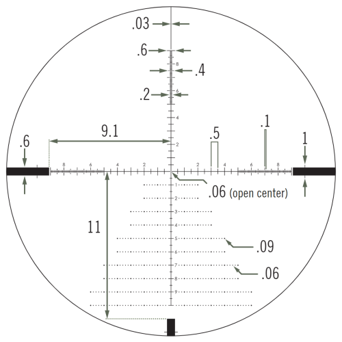 这款瞄准镜为NightForce SHV系列瞄准镜带来了第一个焦平面选项。此功能使射手可以选择使用内置十字线在任何放大倍数设置下保持精准射击。这款SHV 4-14×50 F1可选择MOAR或MIL-R标分划线,这是受欢迎的两种设计。两种标线选项都是带照明的标准配置。